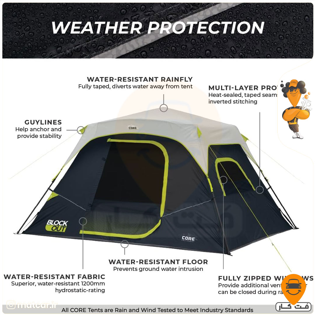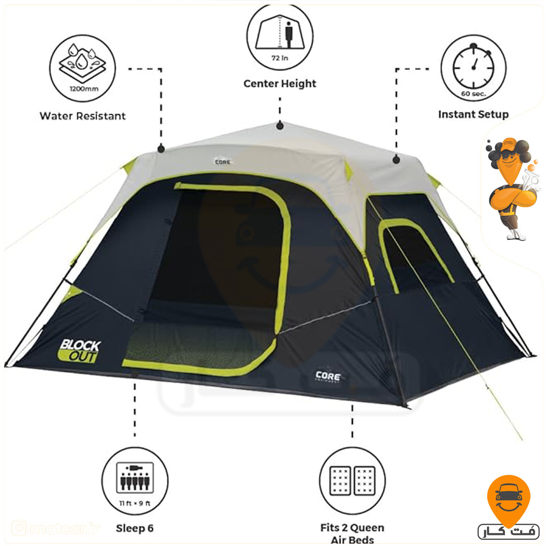 ویژگیهای چادر کمپینگ اتوماتیک 6 نفره کُر CORE 6 PERSON INSTANT BLOCKOUT TENT:
