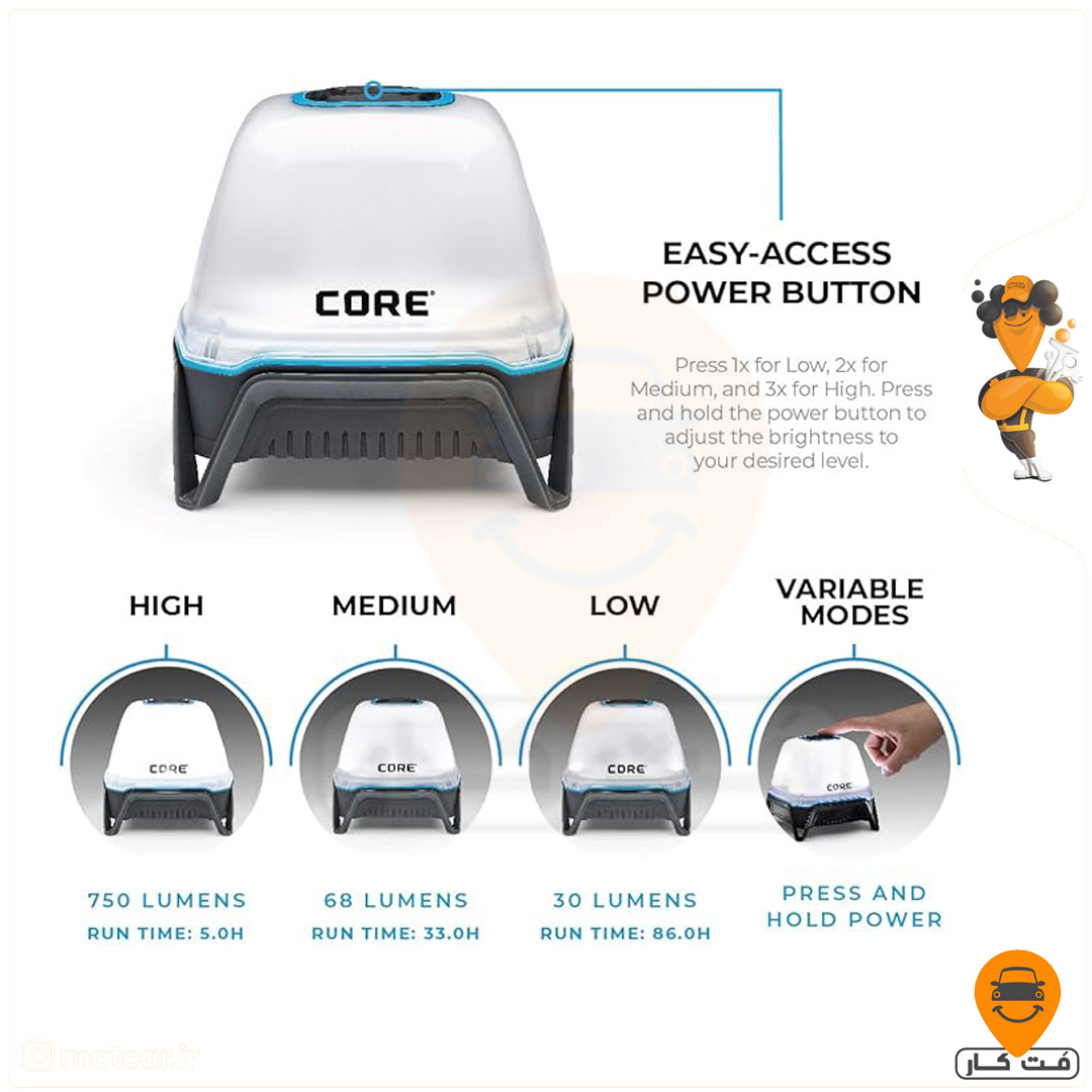 در این مطلب به معرفی و بررسی چراغ مسافرتی شارژی مدل 750 کُر 750 Lumen Rechargeable Lantern می پردازیم. این محصول یکی از مدلهای پر طرفدار برند CORE هست و ویژگیها و کاربردهایی داره که اون رو برای سفر، کمپینگ و مواقع اضطراری گزینه خوبی میکند.
